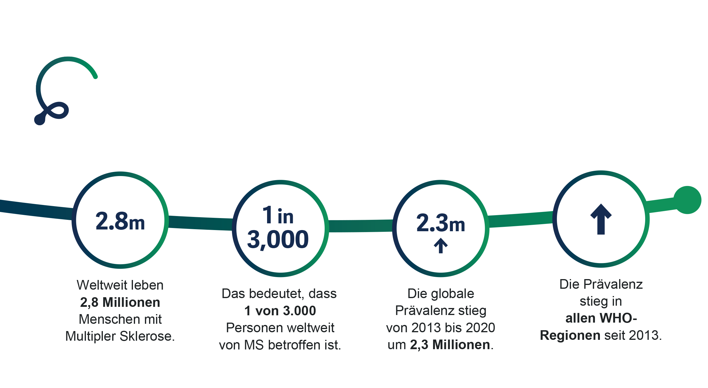 Lag die Schätzung der MS-Betroffenen im Jahr 2013 noch bei 2,3 Millionen Menschen, ist die deren Zahl mittlerweile auf 2,8 Millionen angestiegen. Der Anstieg lässt sich durch optimierte Zählmethoden und immer bessere Diagnosemöglichkeiten, eine steigende Lebenserwartung der Betroffenen und das Bevölkerungswachstum erklären.